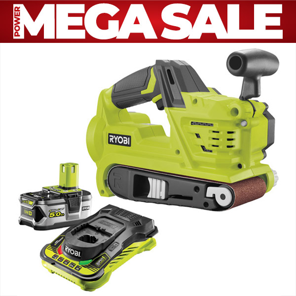 This kit contains the R18BS ONE+ Belt Sander, a 5.0Ah battery and a fast charger.