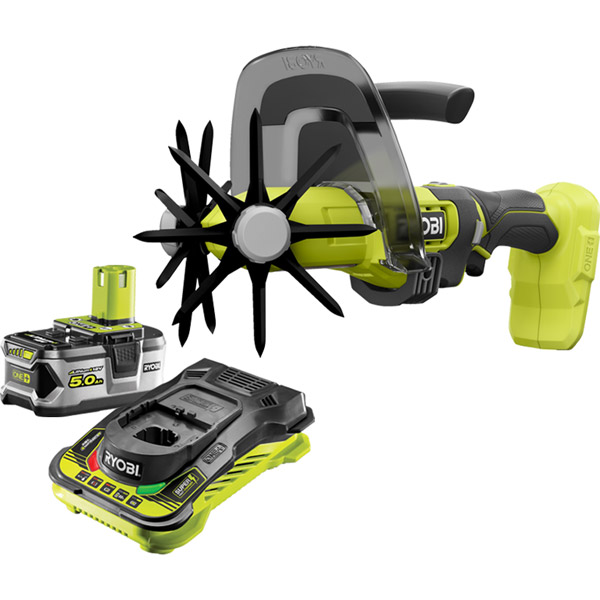This kit includes the RY18HCA Handheld Cultivator, a 5.0Ah battery and a fast charger.