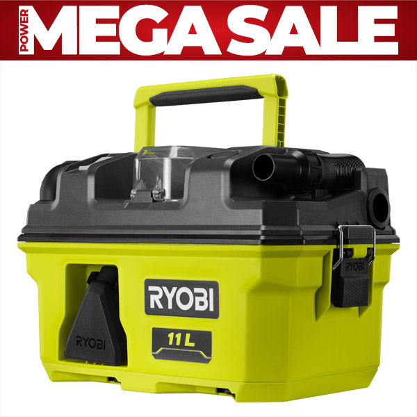 Enhance your RYOBI 18V ONE+ System with the 18V 11 Litre Wet & Dry Vacuum. This vacuum delivers powerful and versatile cleaning with up to 25% more suction than the previous model. This vacuum features integrated storage so you can easily store the included hose, crevice tool, and utility nozzle directly onto the tool. The sturdy latches give you improved durability for longer tool life, and the blower port gives you increased cleaning versatility by having two tools in one. This vacuum features a dual speed setting, giving you control to run it on high for maximum power or on low for maximum runtime, adjusting to your project needs.